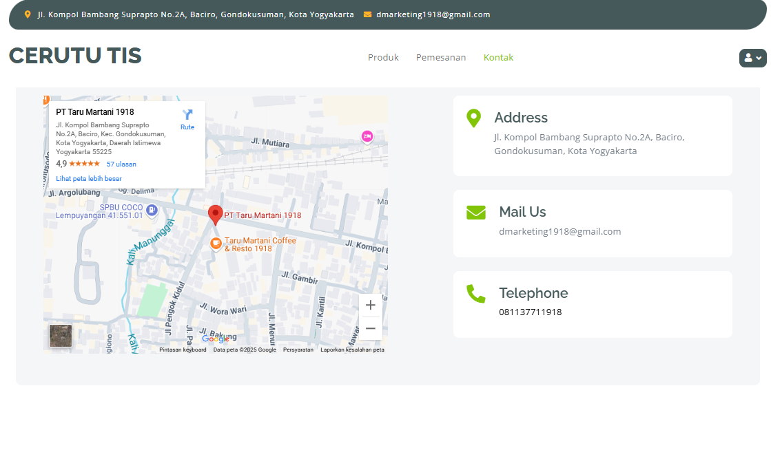 3. Pada halaman kontak terdapat kontak perusahaan yang dapat dihubungi jika ada yang ingin ditanyakan.